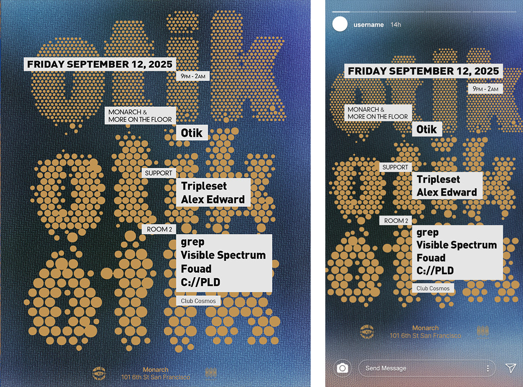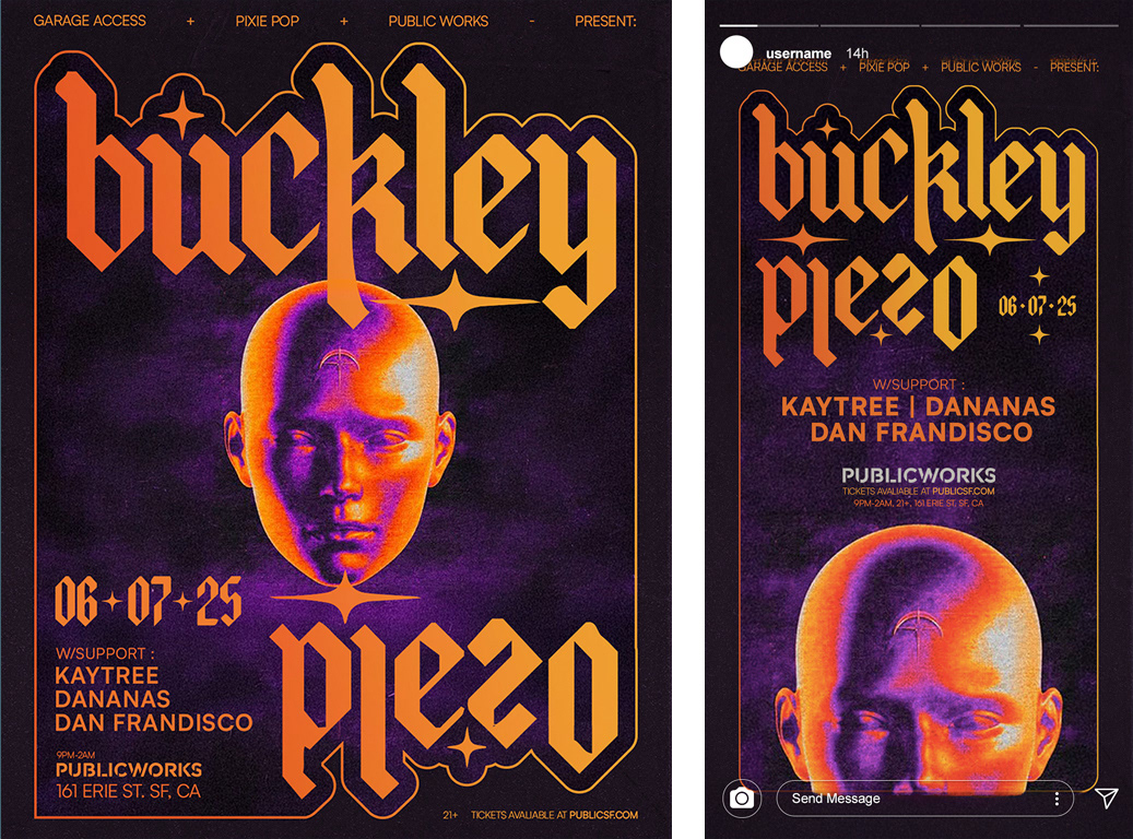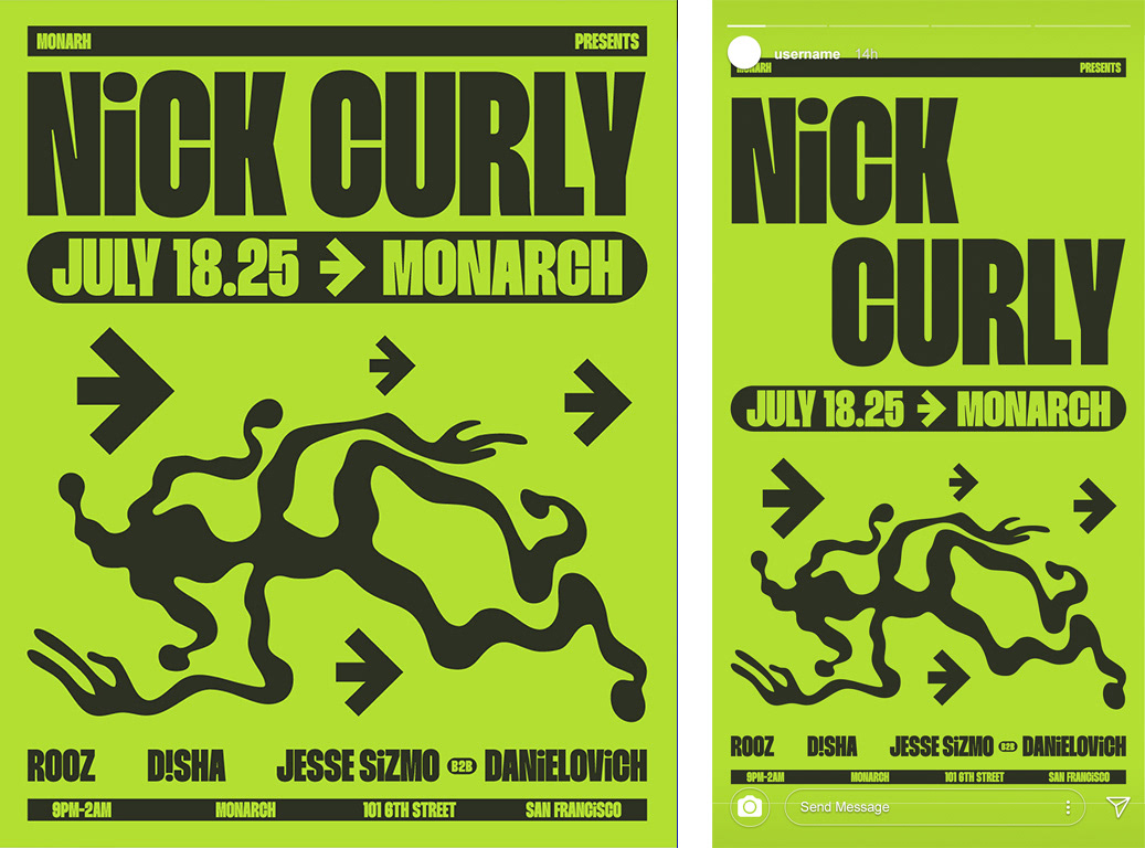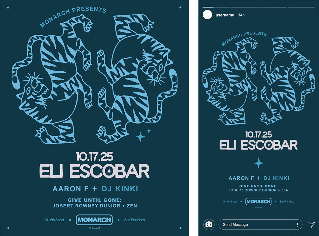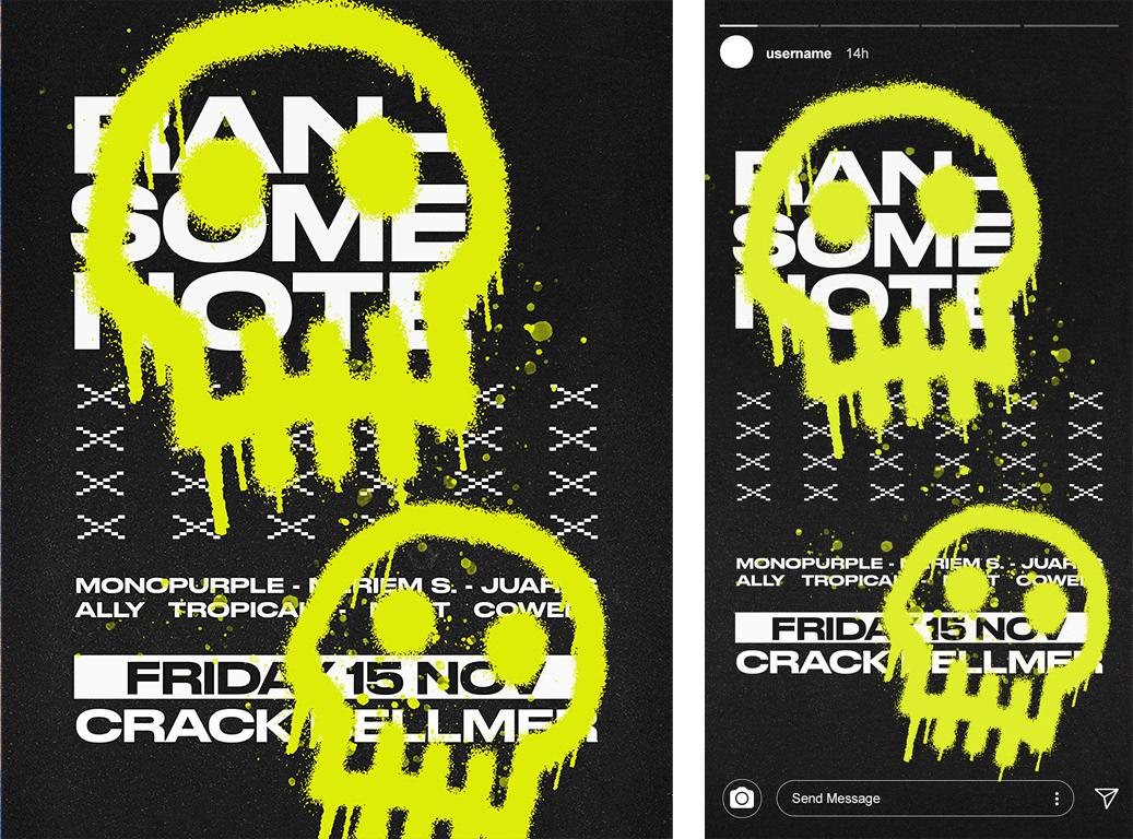 A wide range of styles in event flyers and poster designs for venues and promoters, primarily within the electronic music scene. Most projects offer wide creative freedom, while others require close alignment with an artist’s promotional team or existing brand assets.